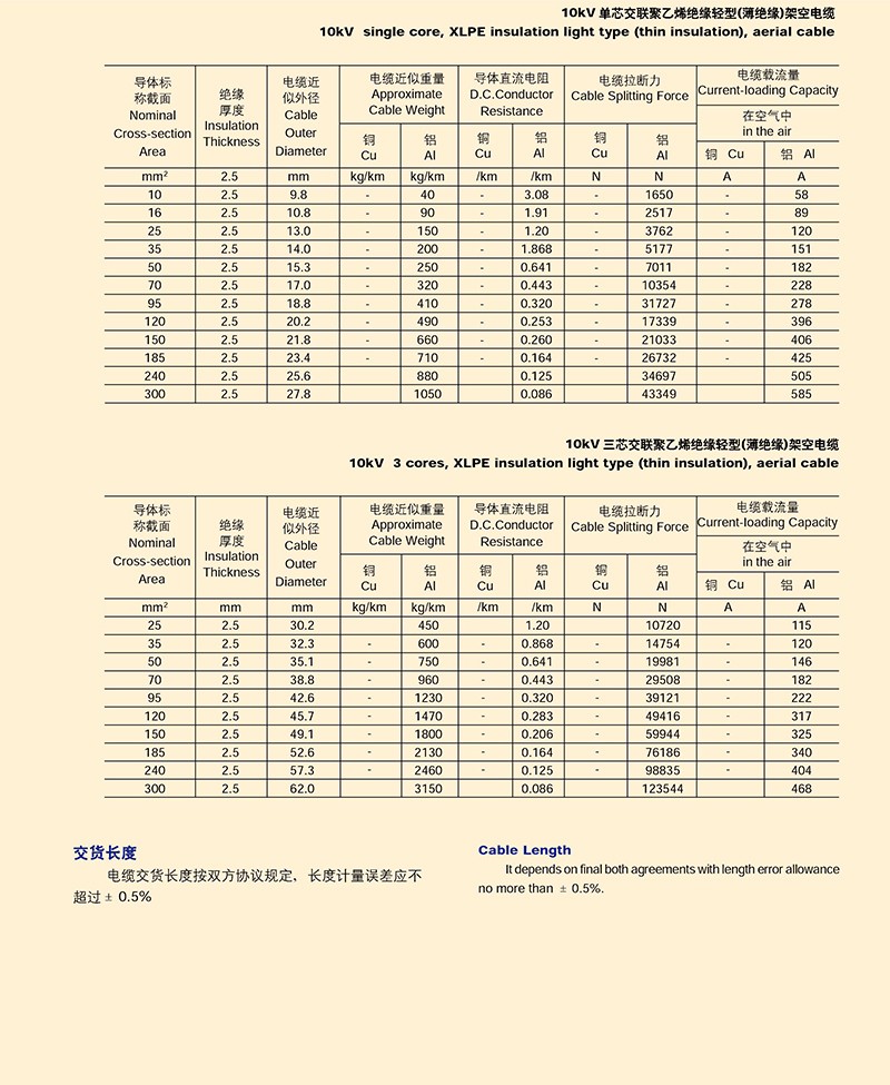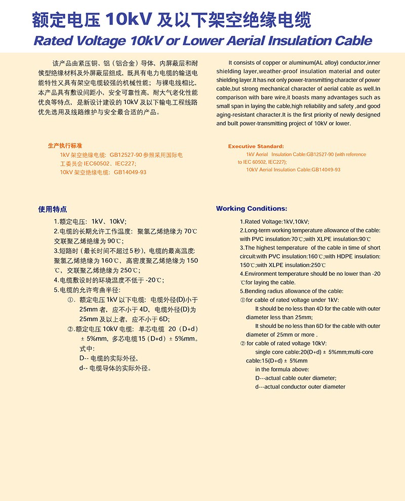 額定電壓10KV以下架空J(rèn)緣電纜